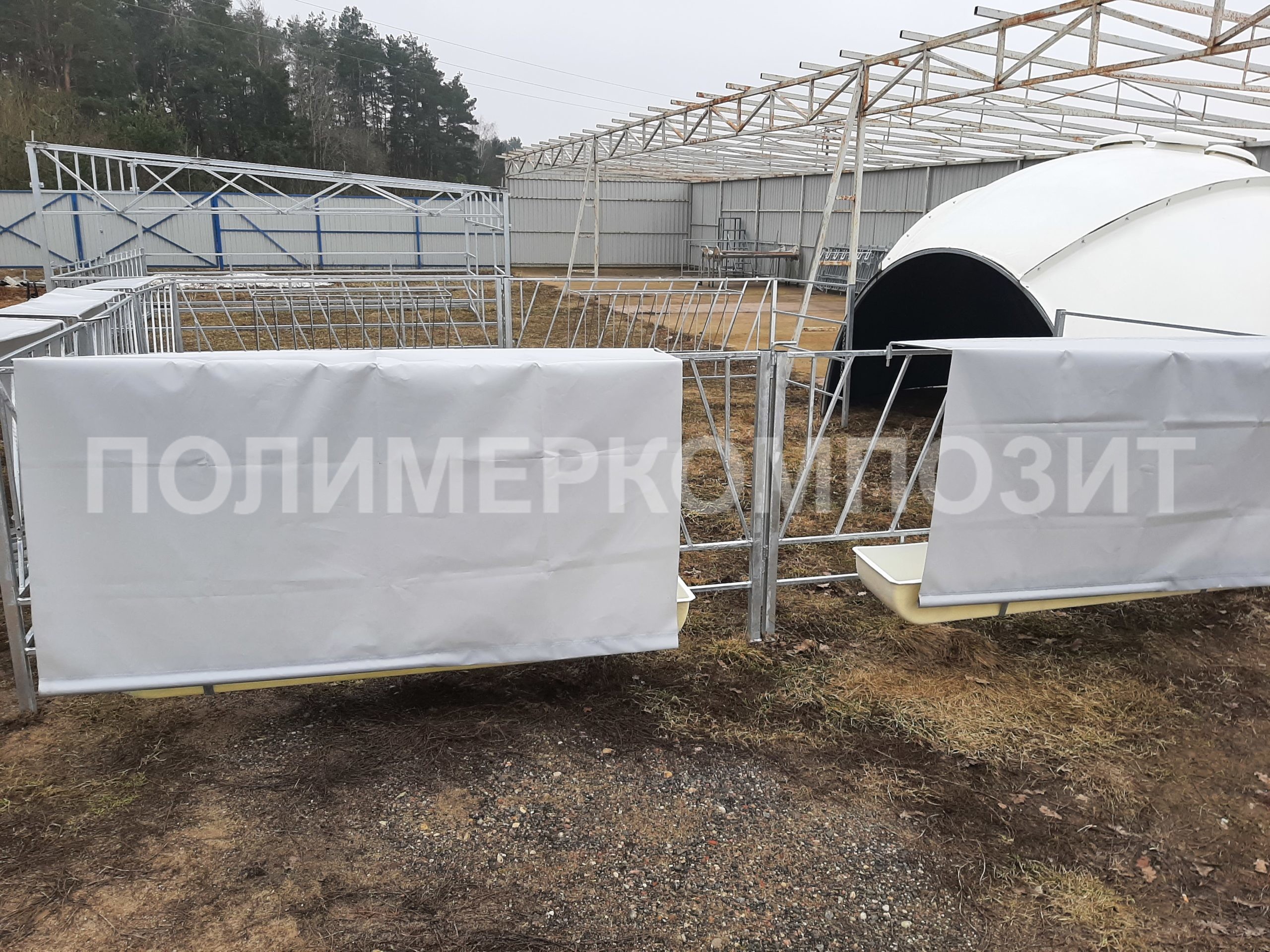 По желанию выгульная площадка может быть оборудована кормушками для сухих кормов -2 шт., ведрами для выпойки 7л – 15 шт., ясли для сена – 2 шт. Кормушки и ведра защищены от осадков полистирольными шторками.