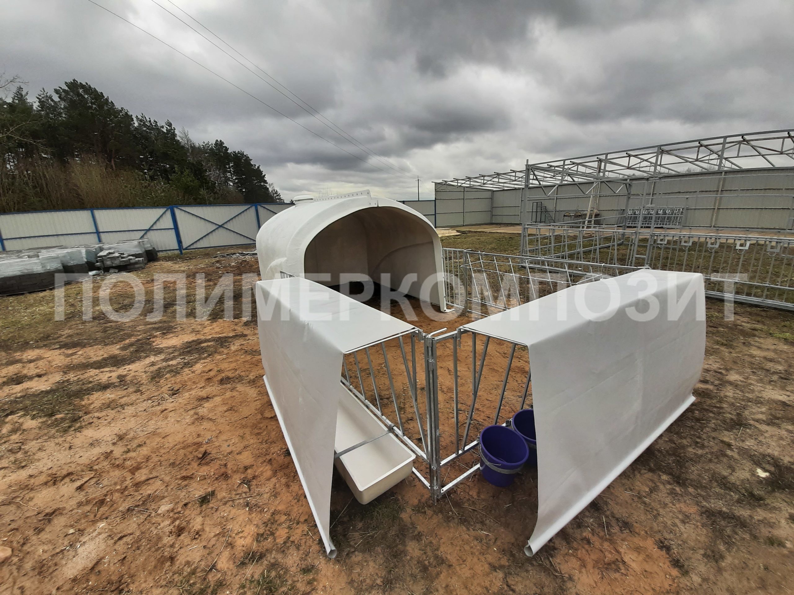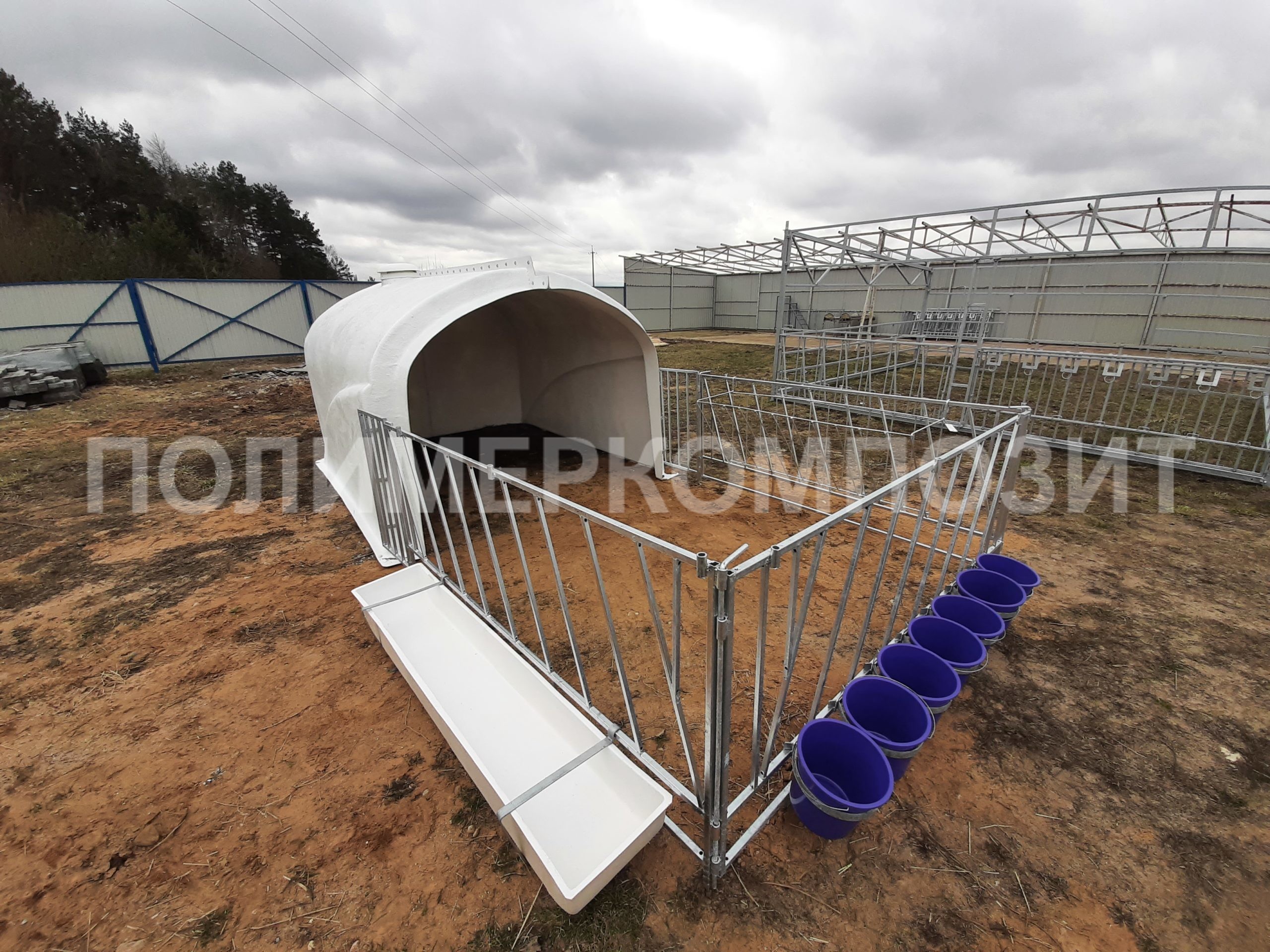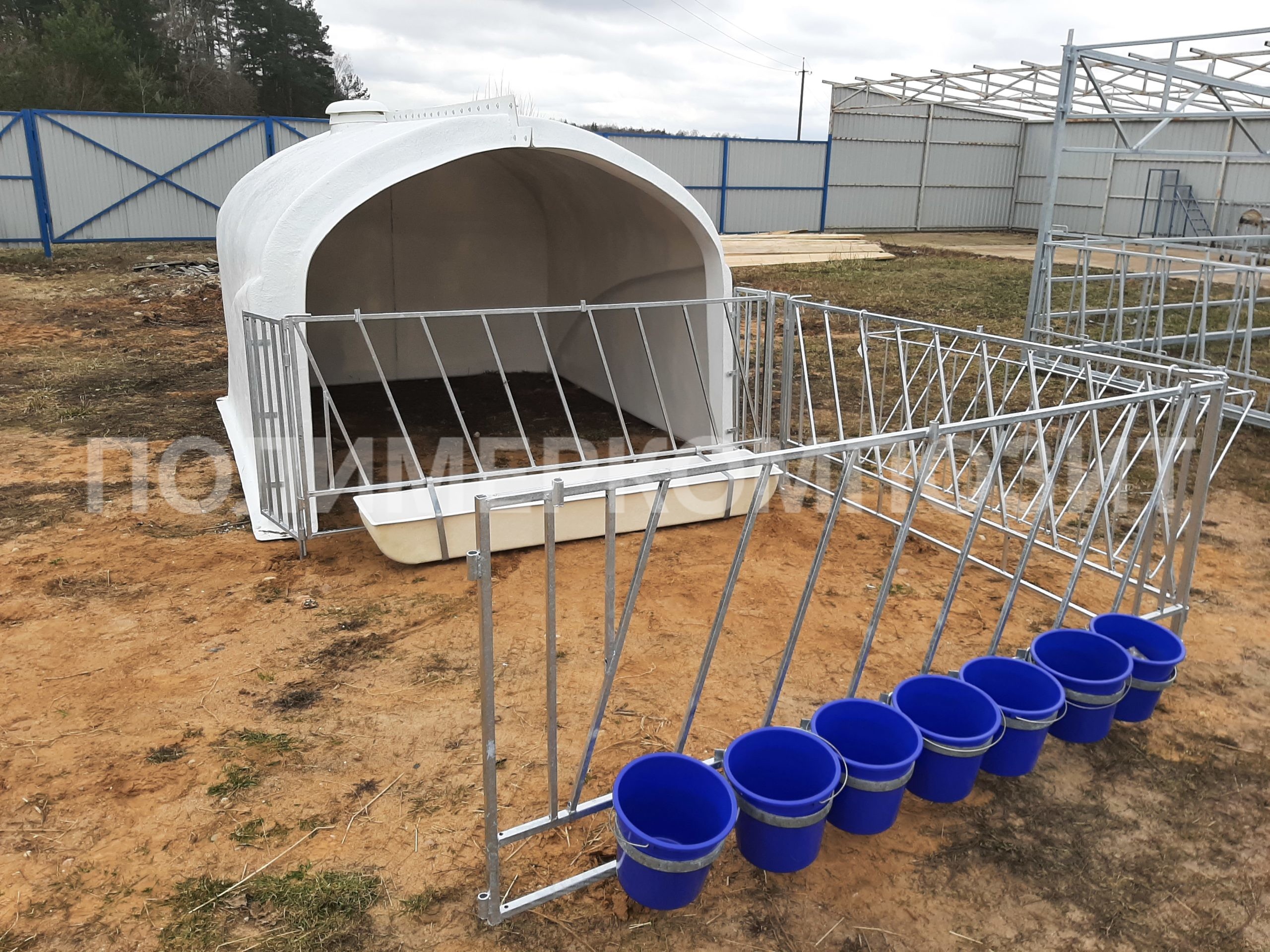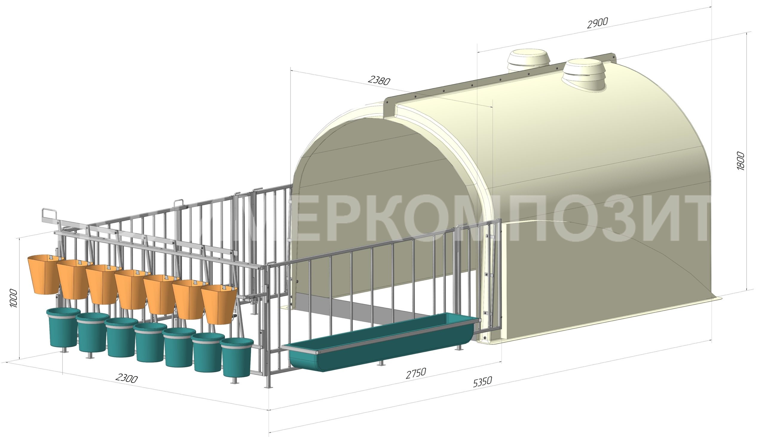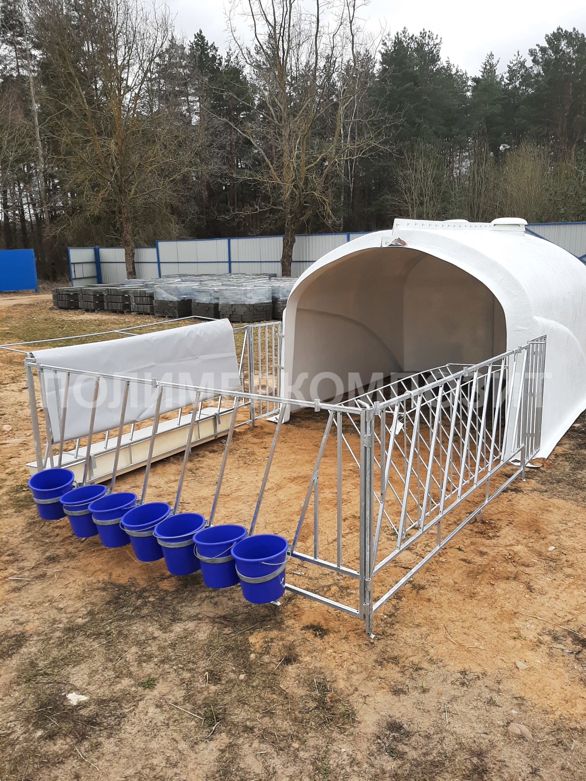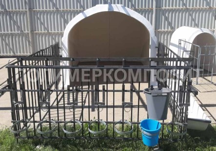 Выгульная площадка может комплектоваться ведром с соской – 7 шт., ведром для выпойки (7л) – 7 шт., кормушка для сухих кормов – 1 шт.
